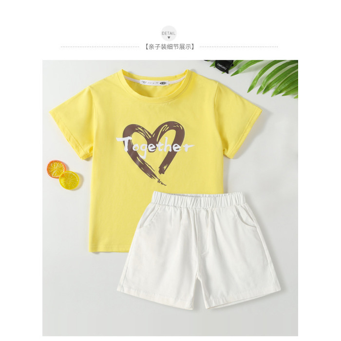 親子裝夏季t恤2025新款一家三四口母子母女愛心印花純棉T潮