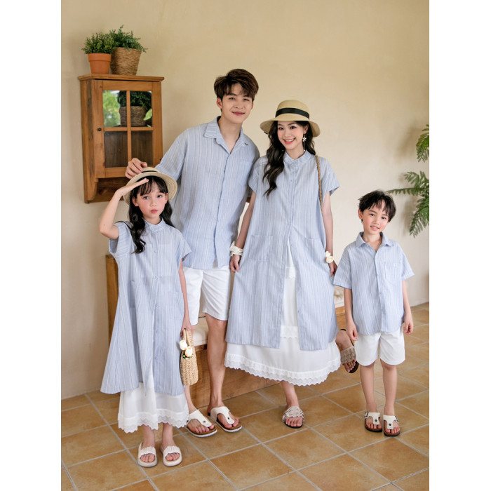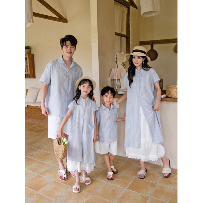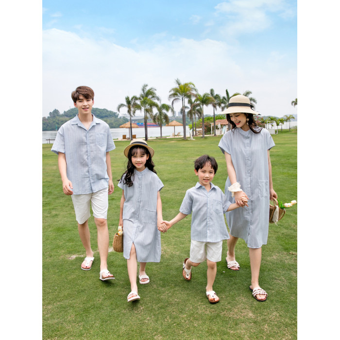 新款沙灘情侶裝一家三四口親子裝連衣裙休閒裝母女裝短袖大牌襯衫