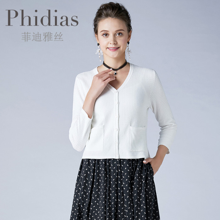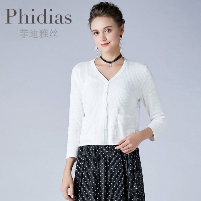Phidias春秋季新款百搭針織打底衫薄款小開衫純色v領毛衣女