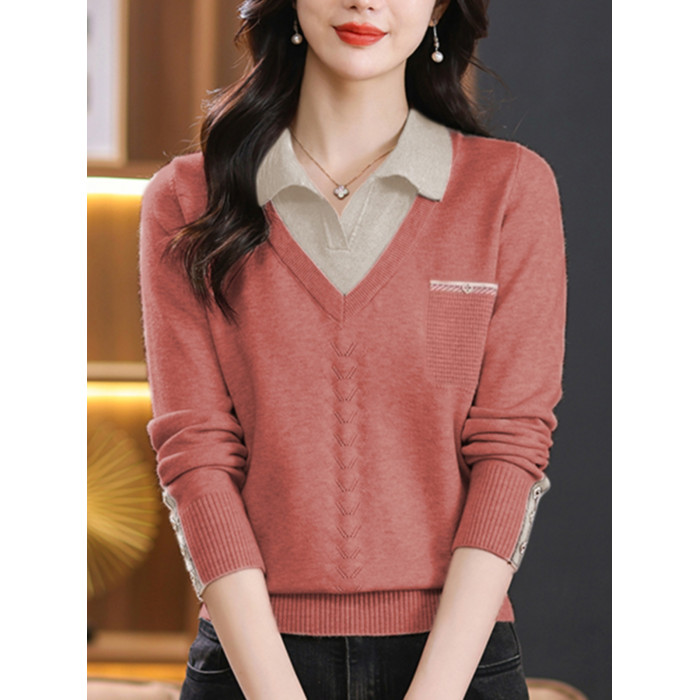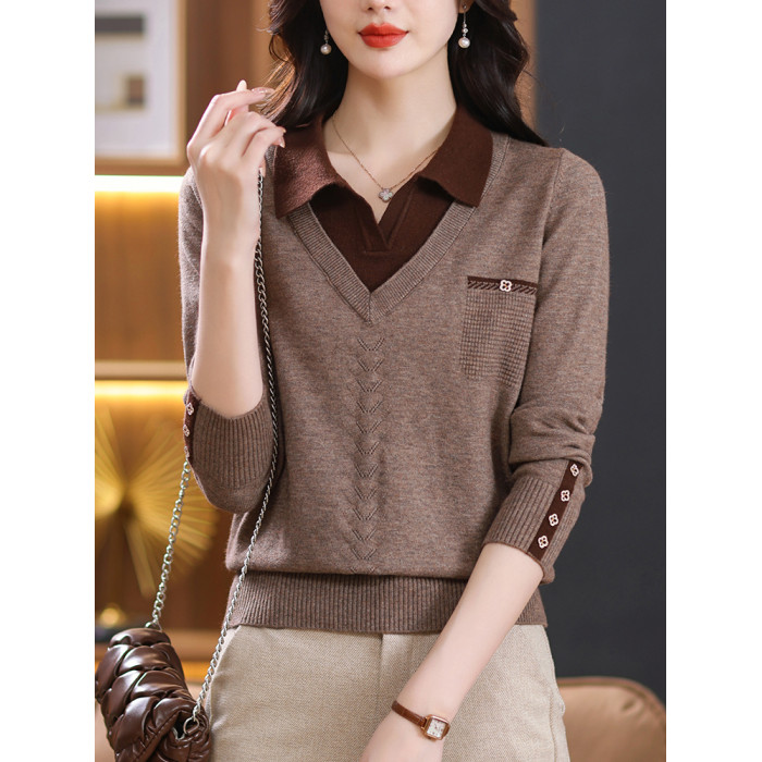 春裝2025新款毛衣假兩件襯衫領針織衫時尚百搭顯瘦上衣春秋打底衫