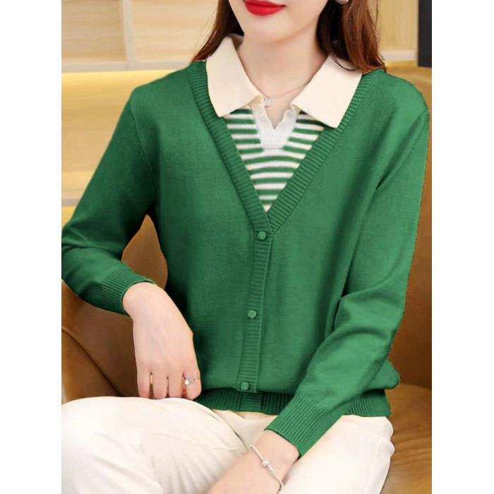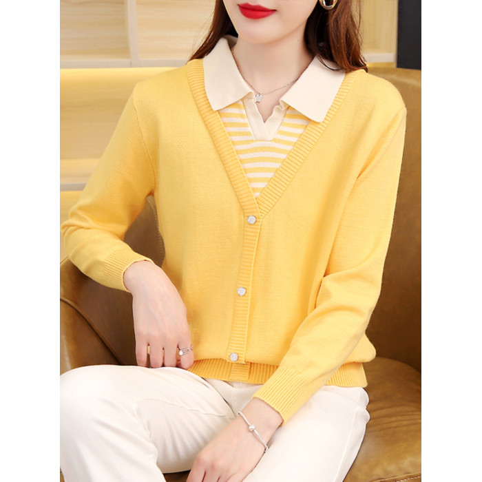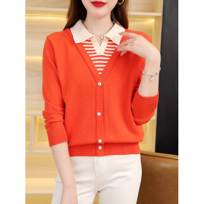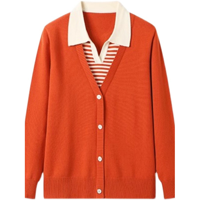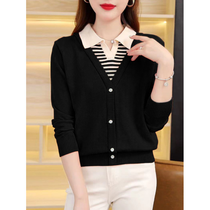 假兩件毛衣女2025春裝新款洋氣翻領上衣時尚減齡春秋季顯瘦打底衫