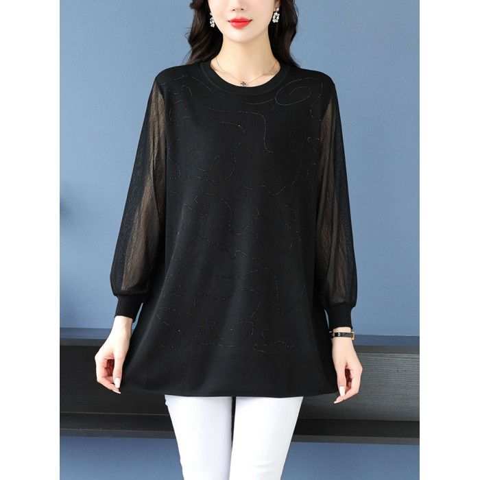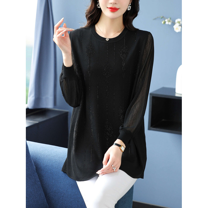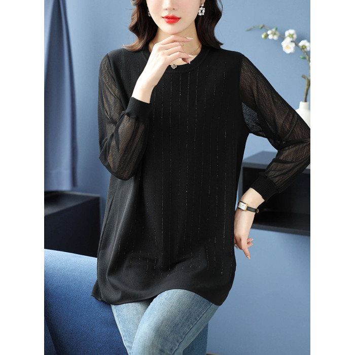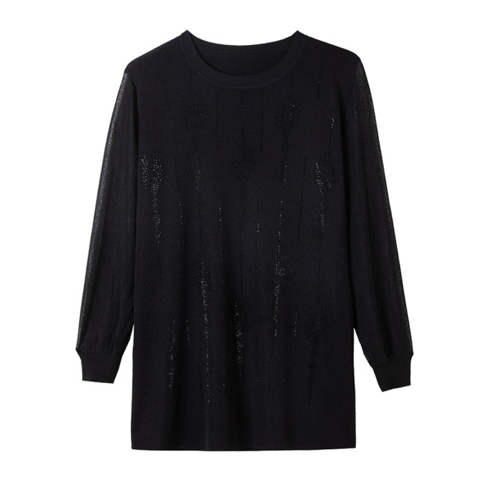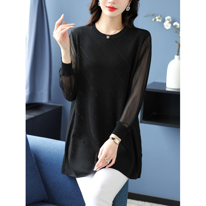大碼女裝薄款中長款針織衫春秋冰絲打底衫胖mm200斤寬松顯瘦上衣