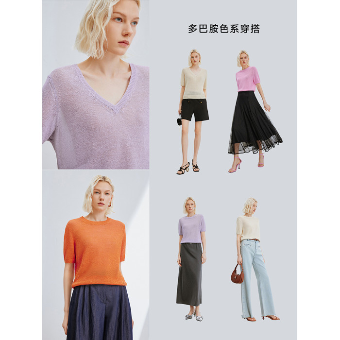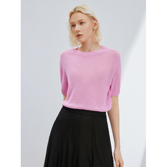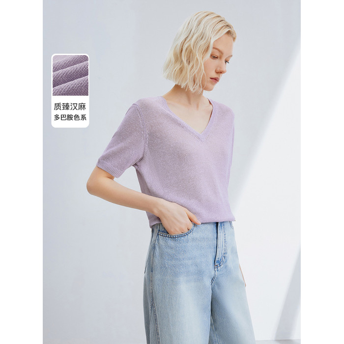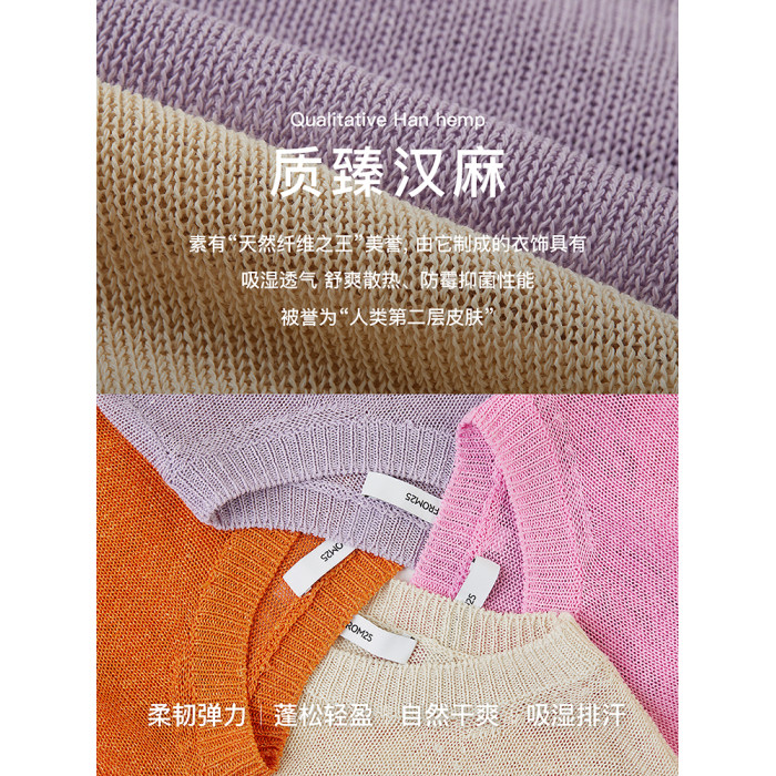 朗姿漢麻氣質夏季薄款短袖高級感打底衫上衣2024年新款毛針織衫女