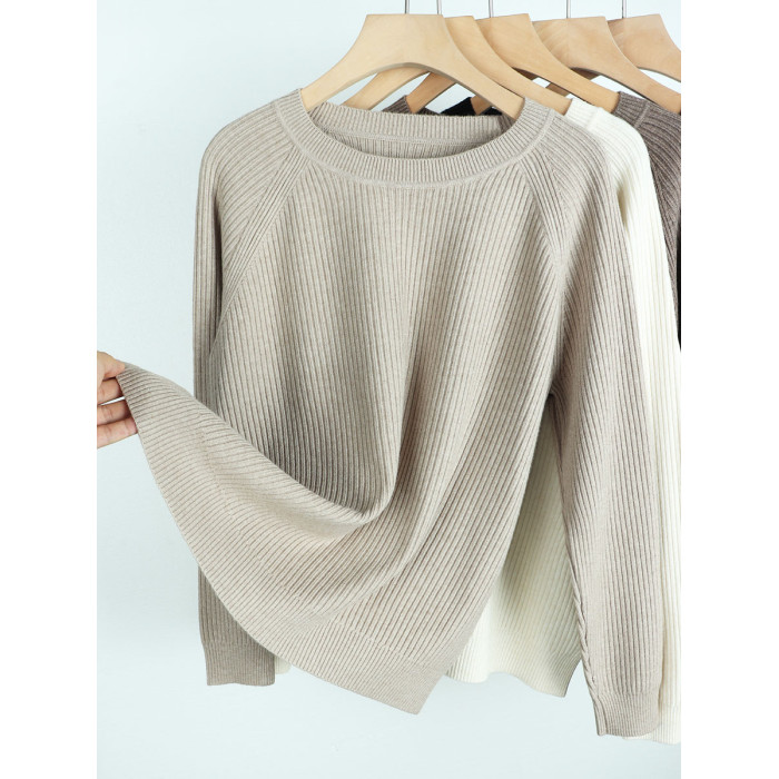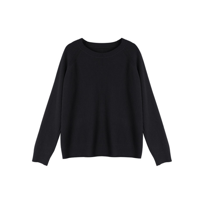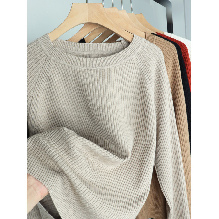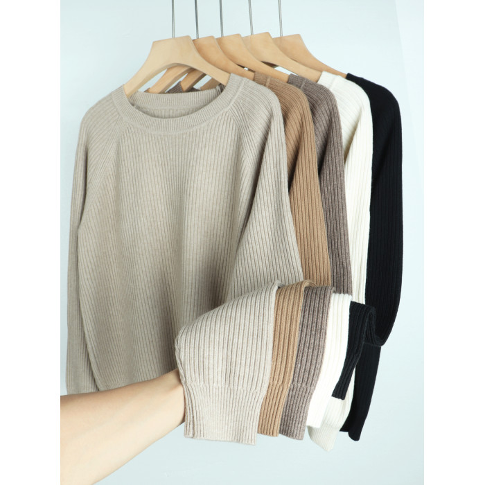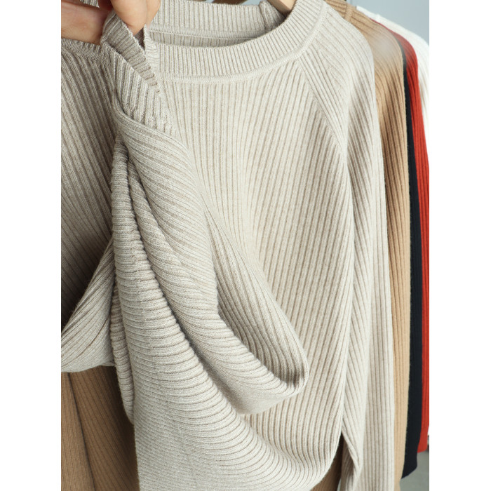 羊毛新款圓領長袖針織衫毛衣女純色百搭春季打底衫寬松顯瘦上衣