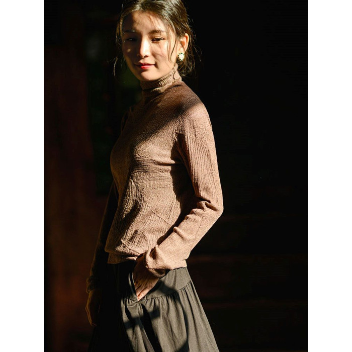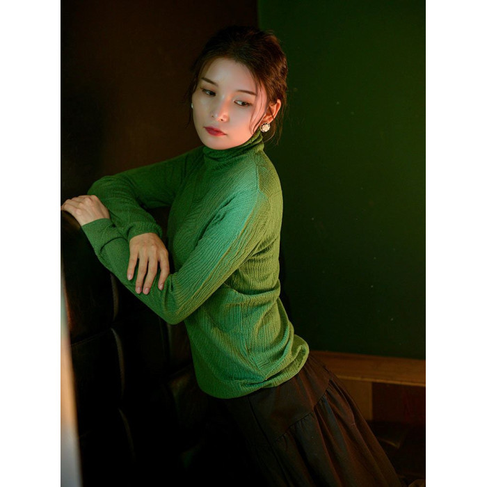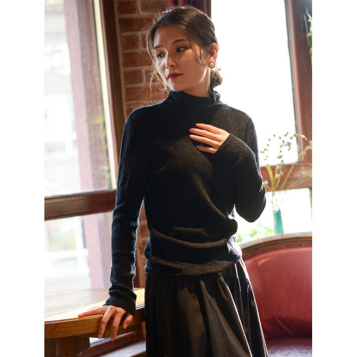 小九鹿秋冬季新品綿羊毛提花長袖針織衫堆堆領套頭打底衫女士毛衣