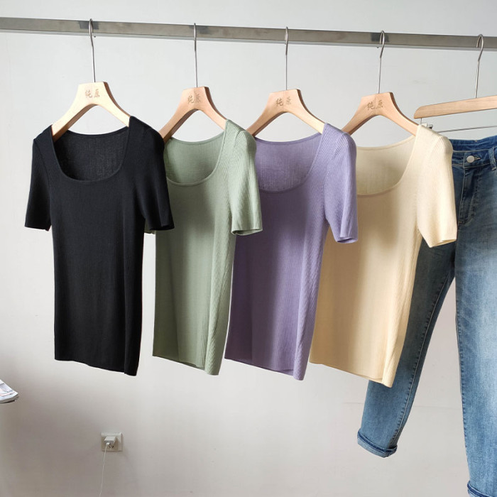 自畱四色!好舒服!天絲蠶絲混紡,紙片人春夏薄款長袖U領T打底衫