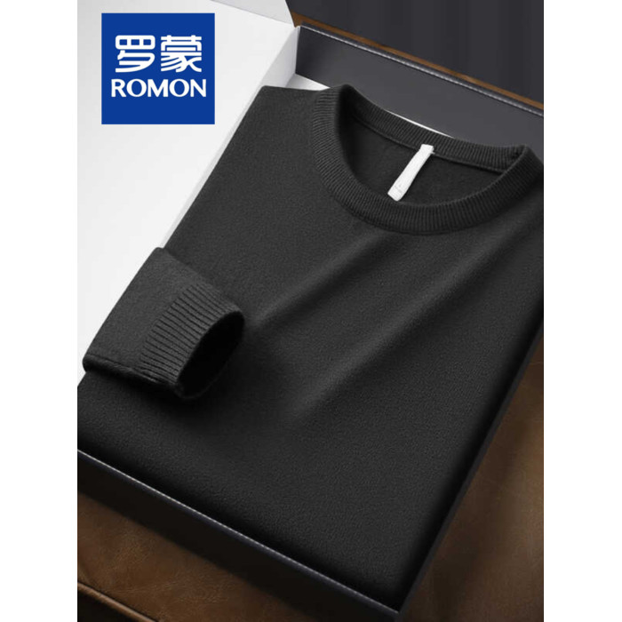 羅矇針織內搭圓領套頭毛衣男2025春秋寬松時尚百搭打底衫上衣