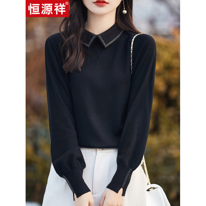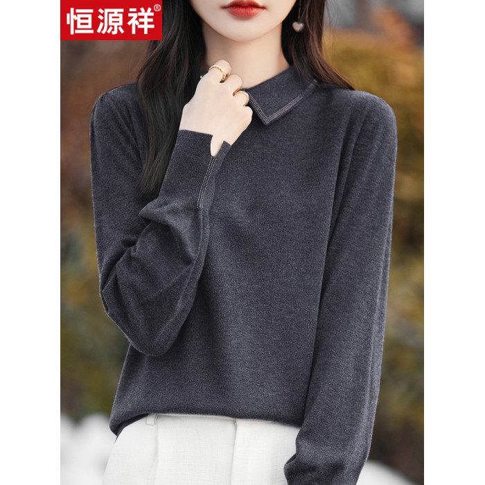 恒源祥針織衫女寬松上衣氣質燙鑽羊毛衫韓版百搭羊絨衫顯瘦打底衫
