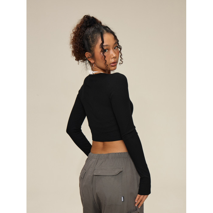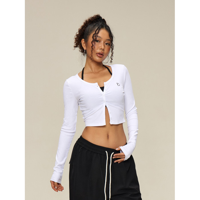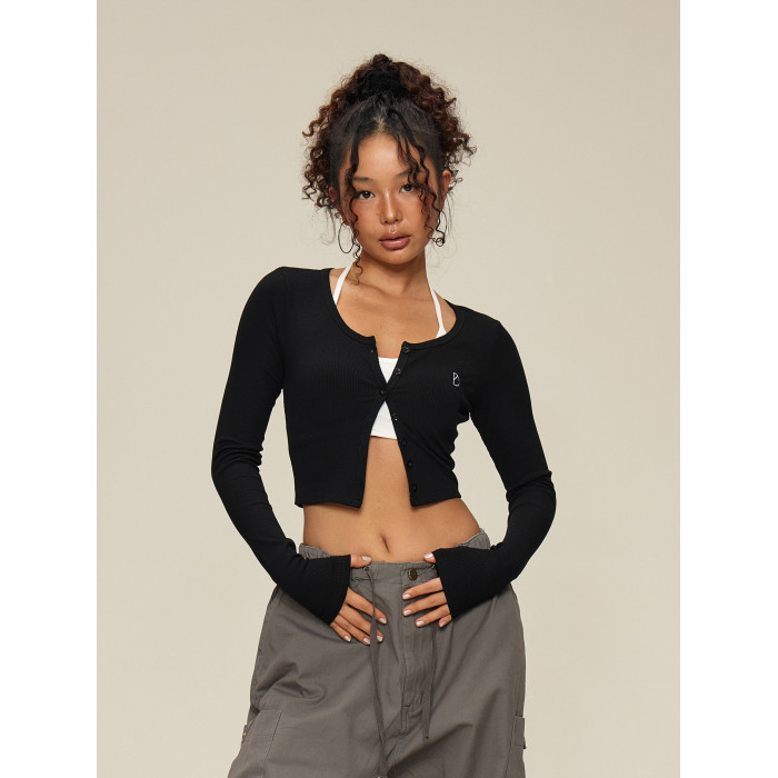 SMILE DDD美式復古短款辣妹針織衫修身薄款長袖開衫內搭打底衫女
