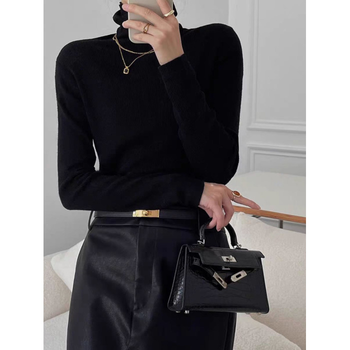 美麗諾精紡羊毛針織高領內搭打底衫女秋冬薄款修身顯瘦堆堆領毛衣