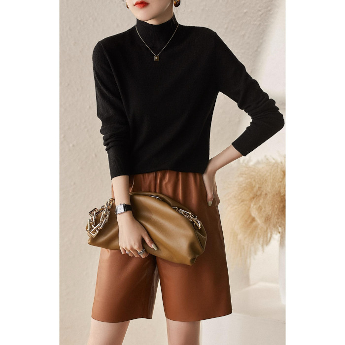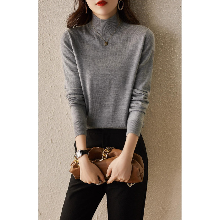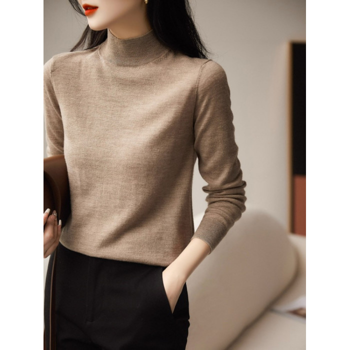 春秋內搭精紡羊毛衫女半高領套頭針織打底衫2025新款軟糯薄款毛衣