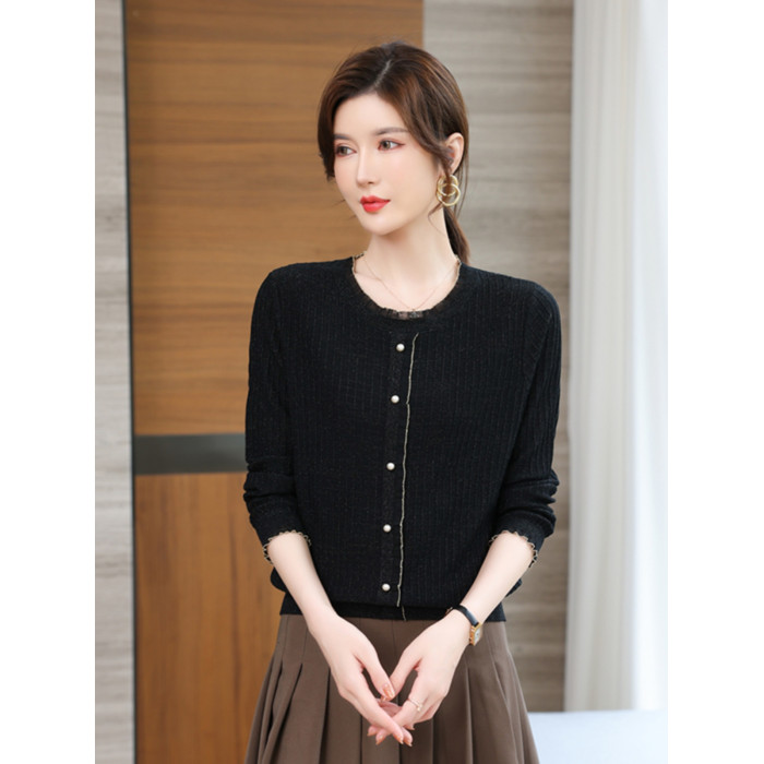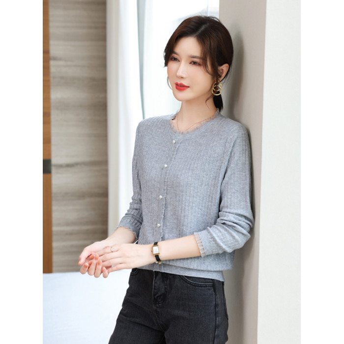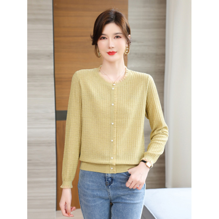 桑蠶絲針織打底衫女薄款春秋季2025新款小衫媽媽冰絲長袖圓領上衣
