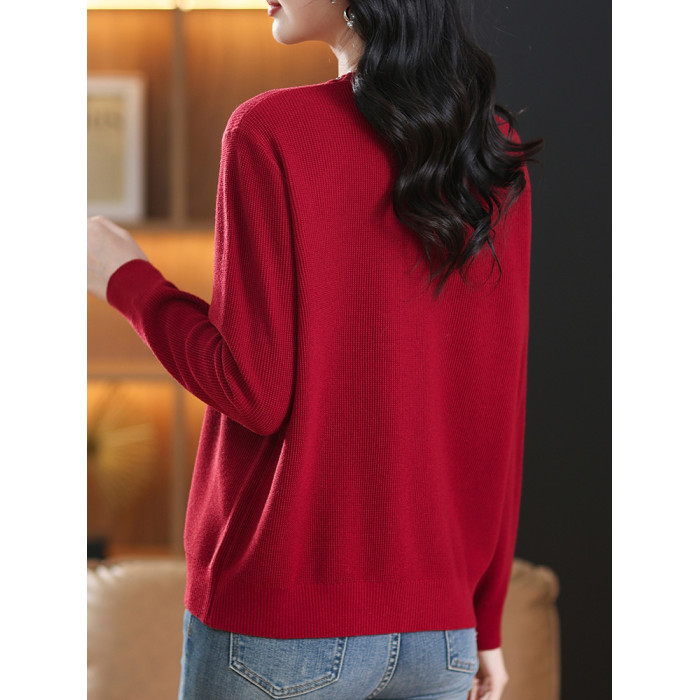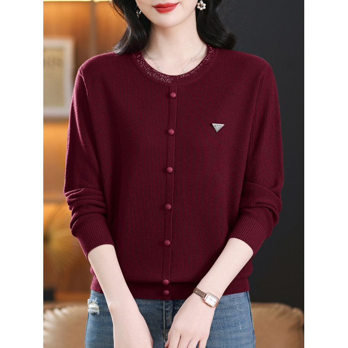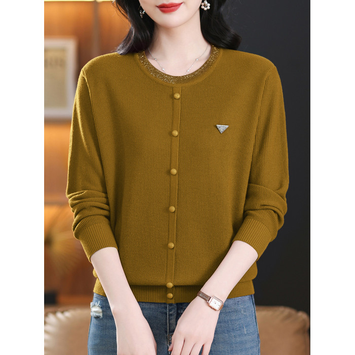 媽媽裝圓領冰絲上衣女2025春裝新款寬松洋氣減齡三角標針織打底衫