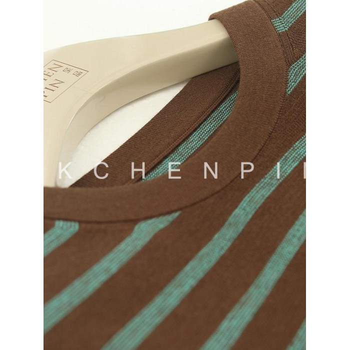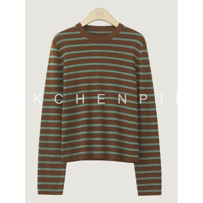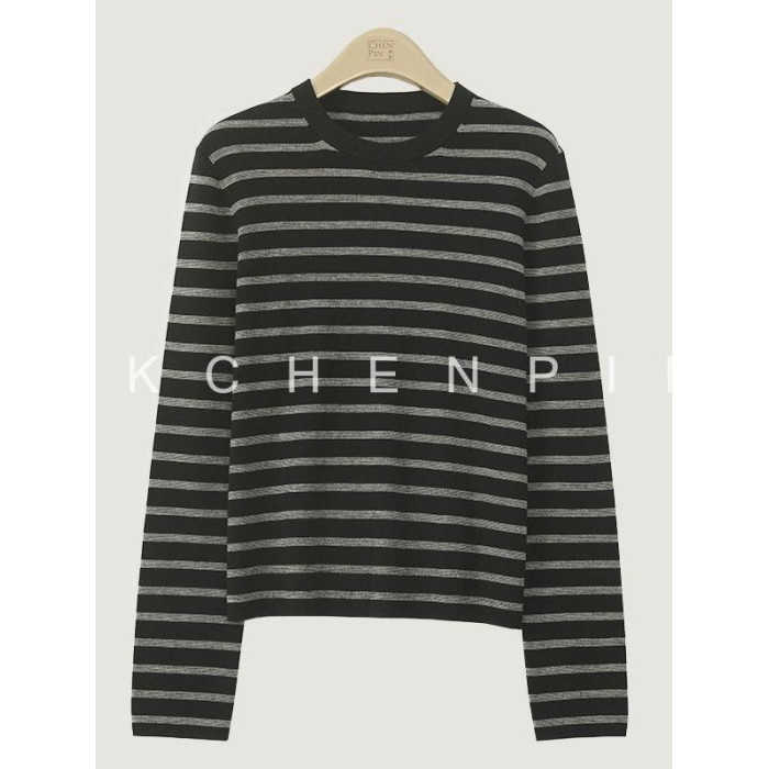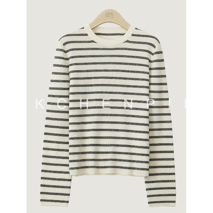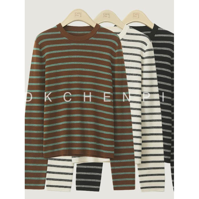 呈品60支100羊毛衫女百搭條紋毛衣2025春裝新款百搭休閒打底衫