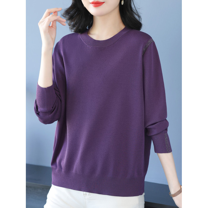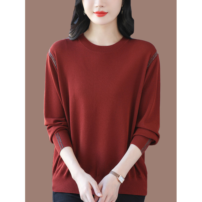 媽媽毛衣女薄款羊毛打底衫加肥加大碼韓版寬松顯瘦針織衫上衣圓領