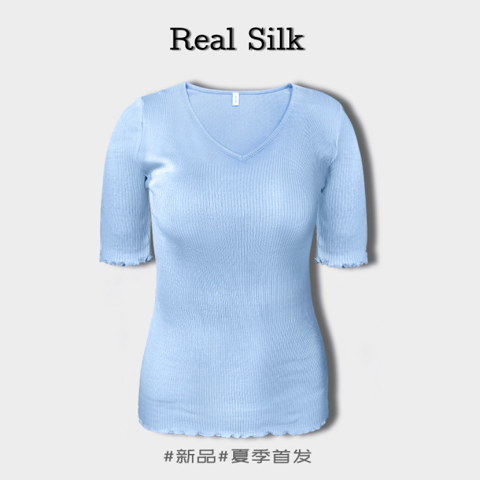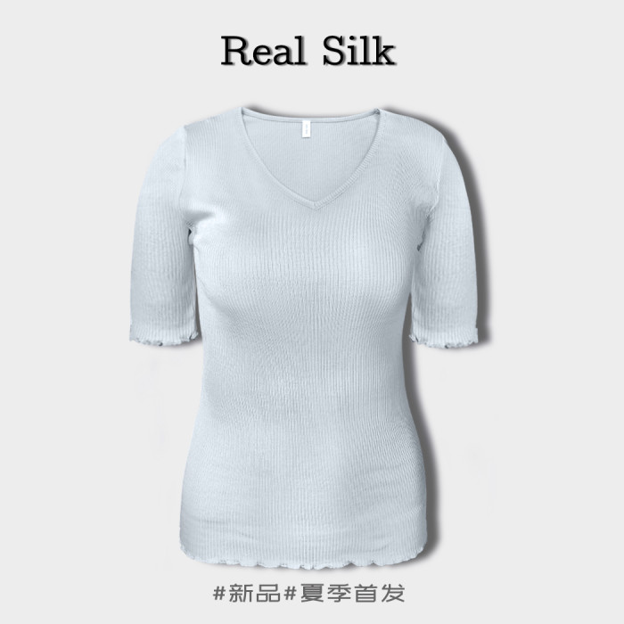 桑蠶絲真絲五分袖V領打底衫女內搭小衫春季新款百搭上衣