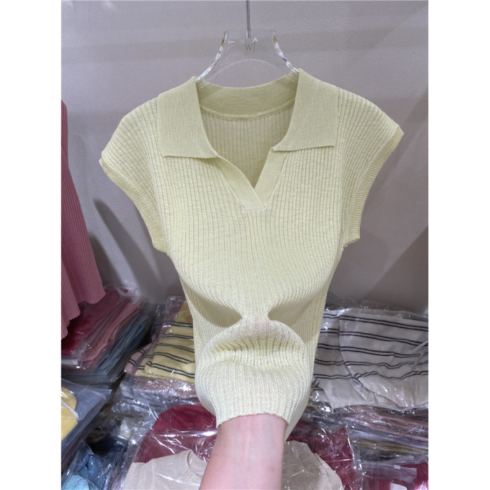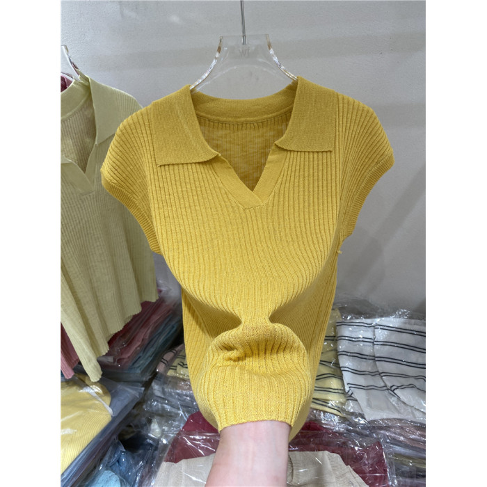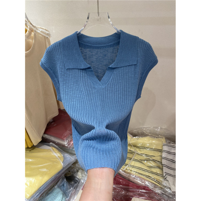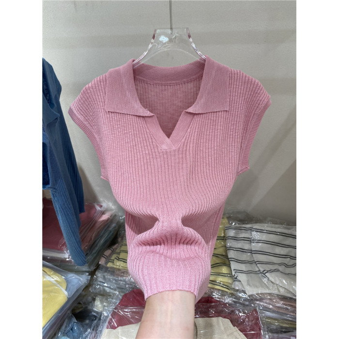 氣質翻領純色百搭薄款針織衫女2025夏季新款修身顯瘦打底衫上衣潮