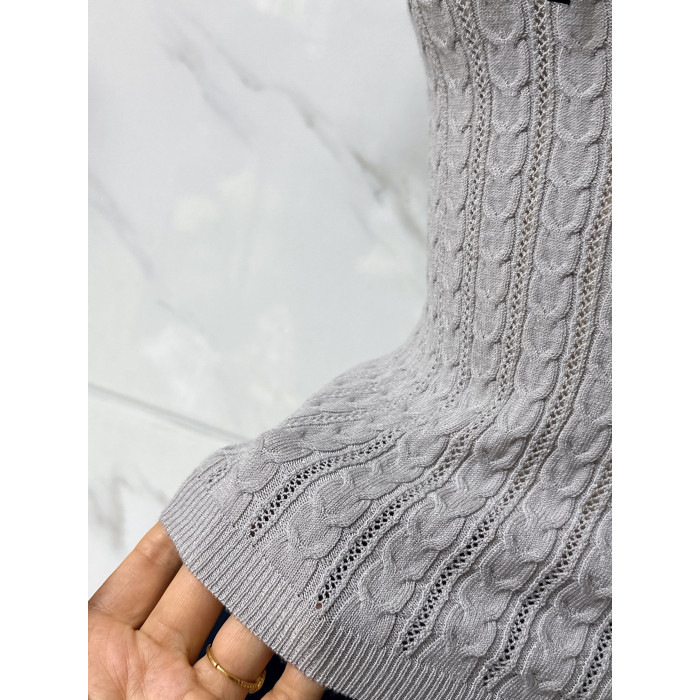 朵朵良品 自製甜美蝴蝶結系帶修身顯瘦絞花短袖針織衫 打底衫