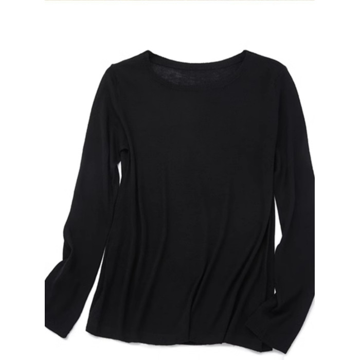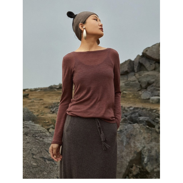 芳慈家 魚嘴領水溶羊毛打底衫100支超薄款經典女士低圓領毛衣