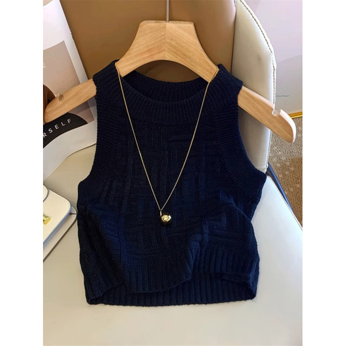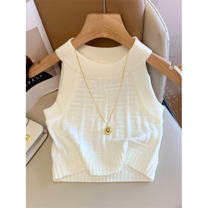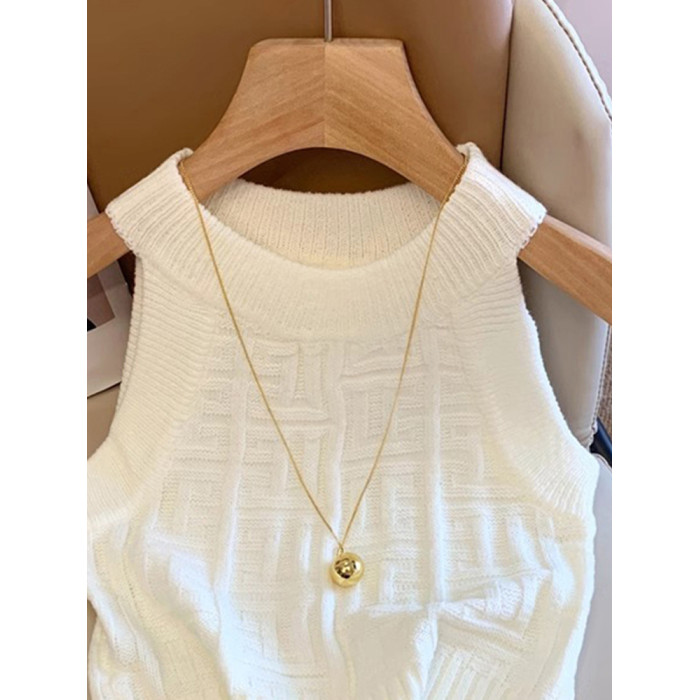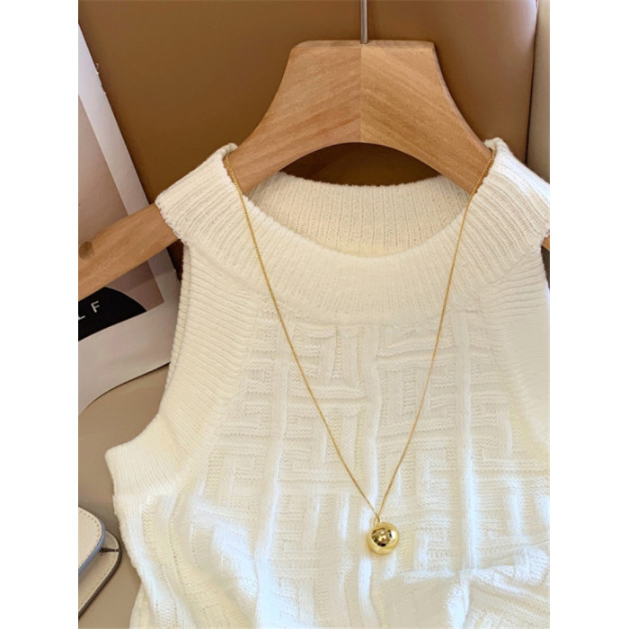 小香風冰絲針織掛脖背心女夏季款外穿短款打底衫別致露肩無袖上衣
