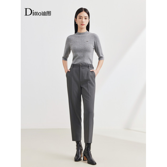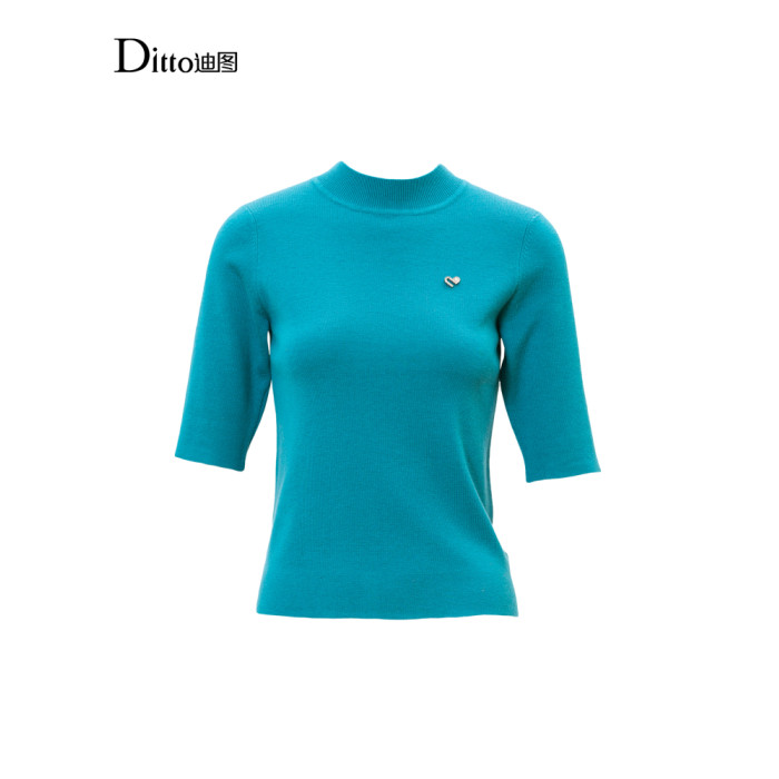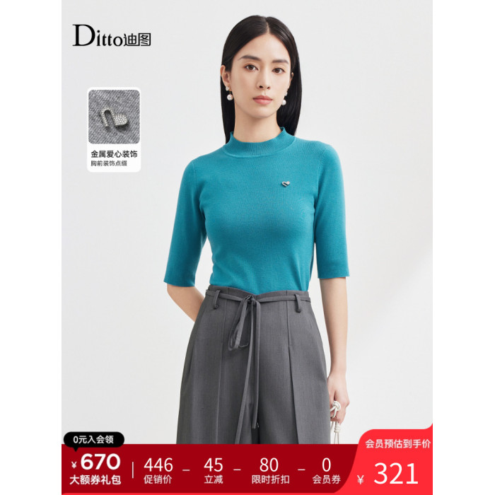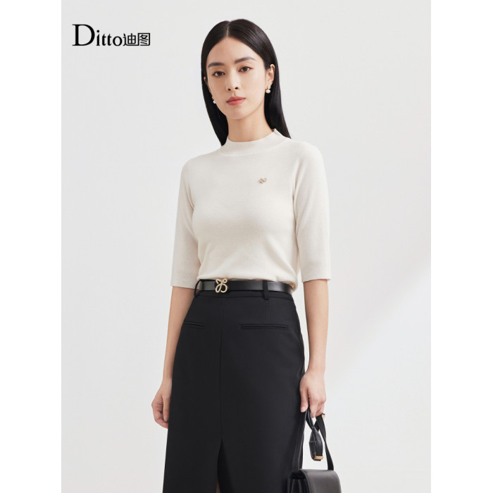 Ditto/迪圖2025秋季新款毛衣百搭休閒氣質打底衫中袖圓領針織衫