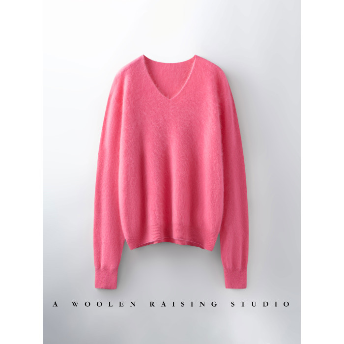 一線成衣山羊絨衫拉絨女V領羊毛衫無縫套頭毛衣寬松針織打底衫純