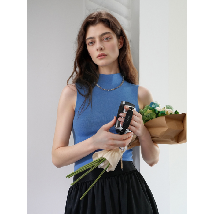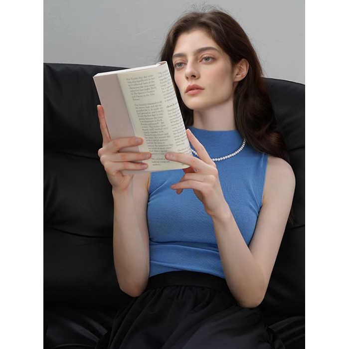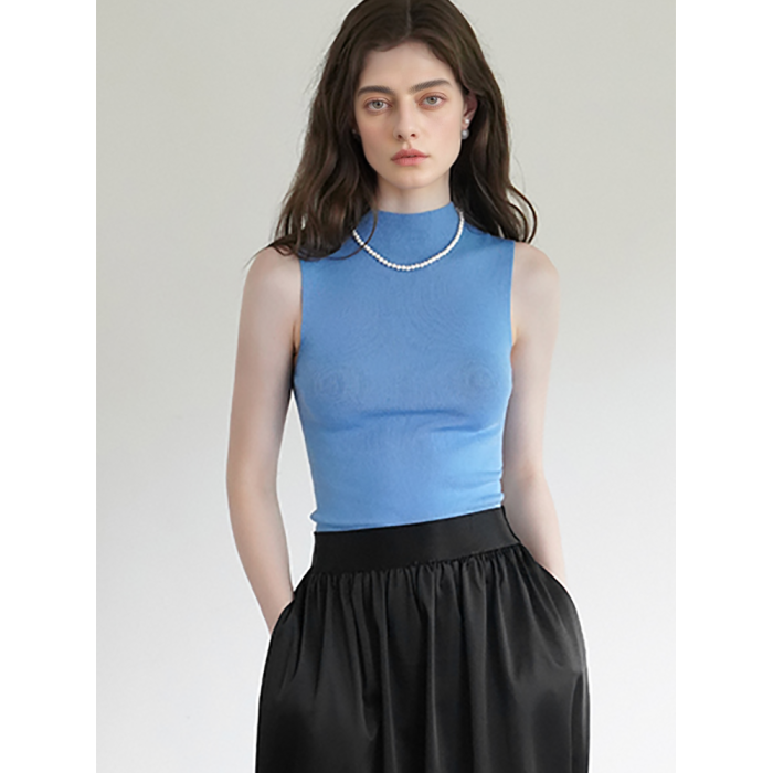 天藍色無袖打底衫女敭子紗修身內搭美麗諾超細羊毛半高領針織背心
