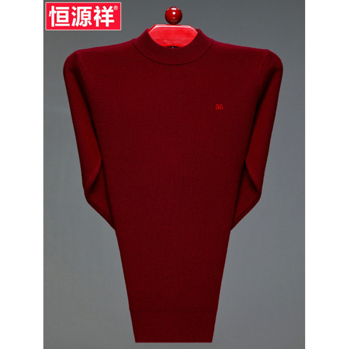 冬季恒源祥羊絨衫100%純山羊絨男半高領羊毛衫加厚中年毛衣打底衫