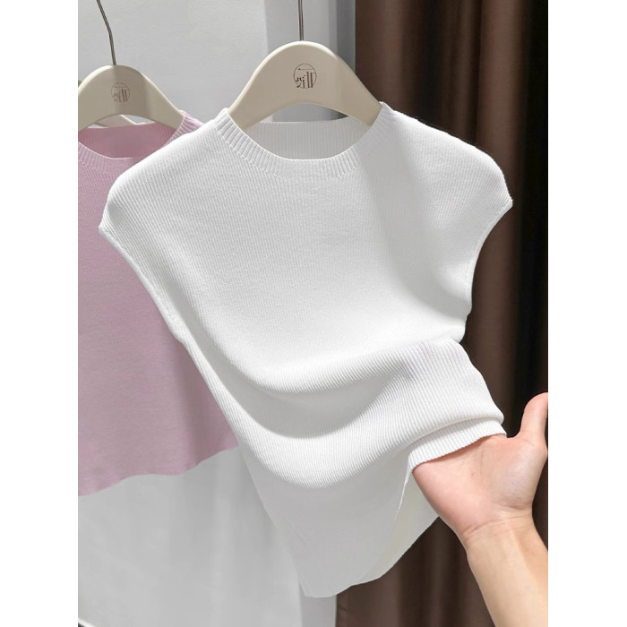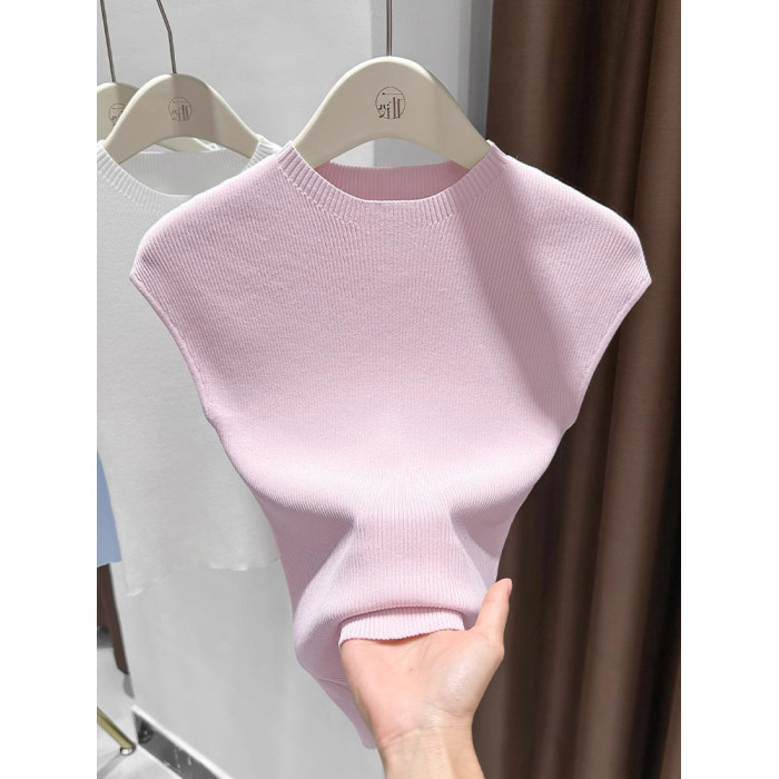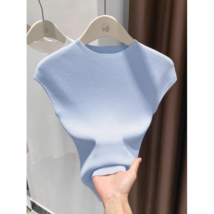 氣質半高領天絲針織背心女薄款無袖休閒打底衫韓系百搭坎肩上衣夏