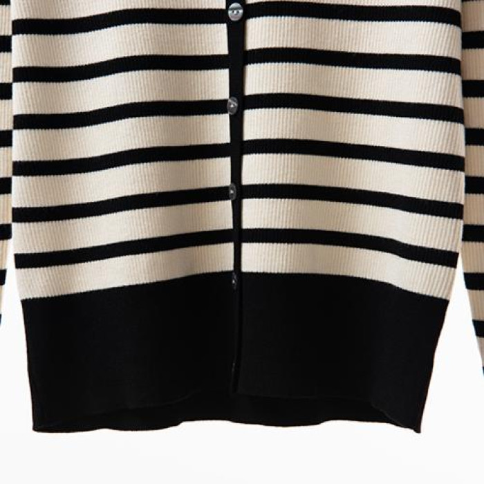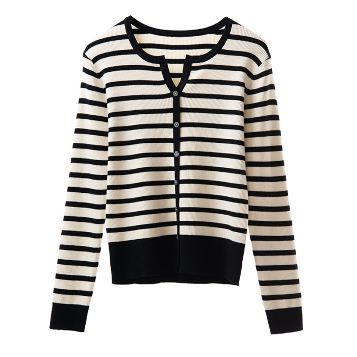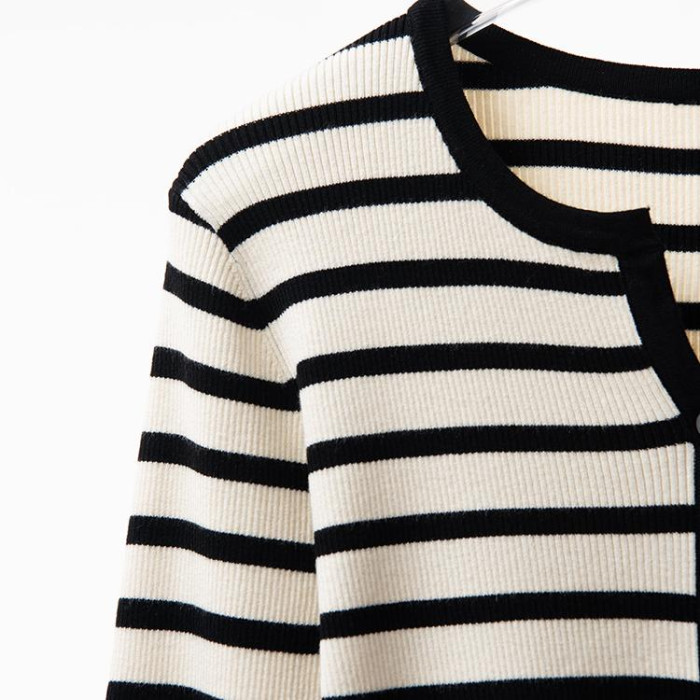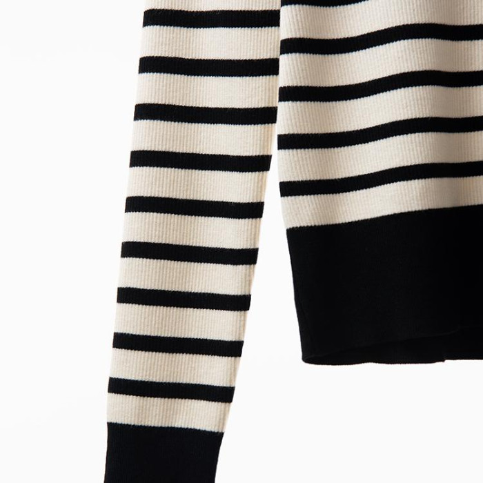 條紋針織衫女秋冬2024新款外搭毛衣休閒修身顯瘦長袖打底衫上衣