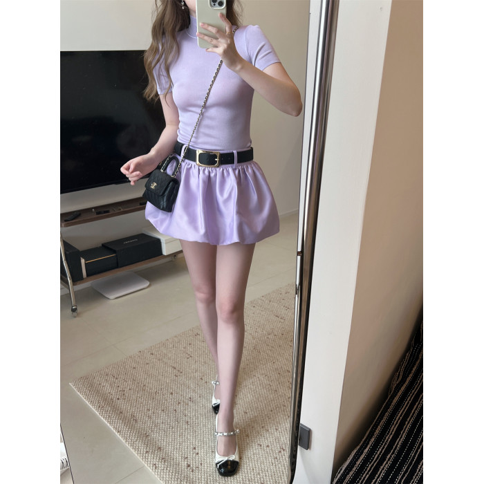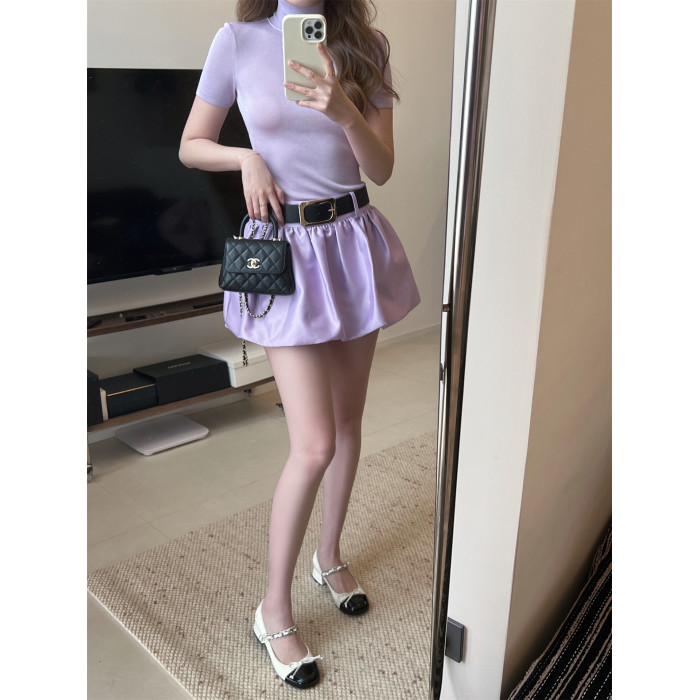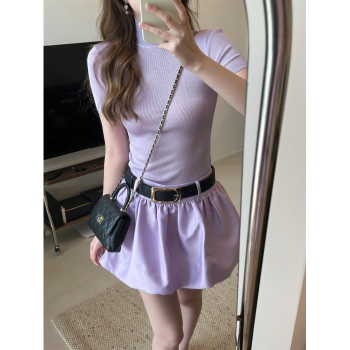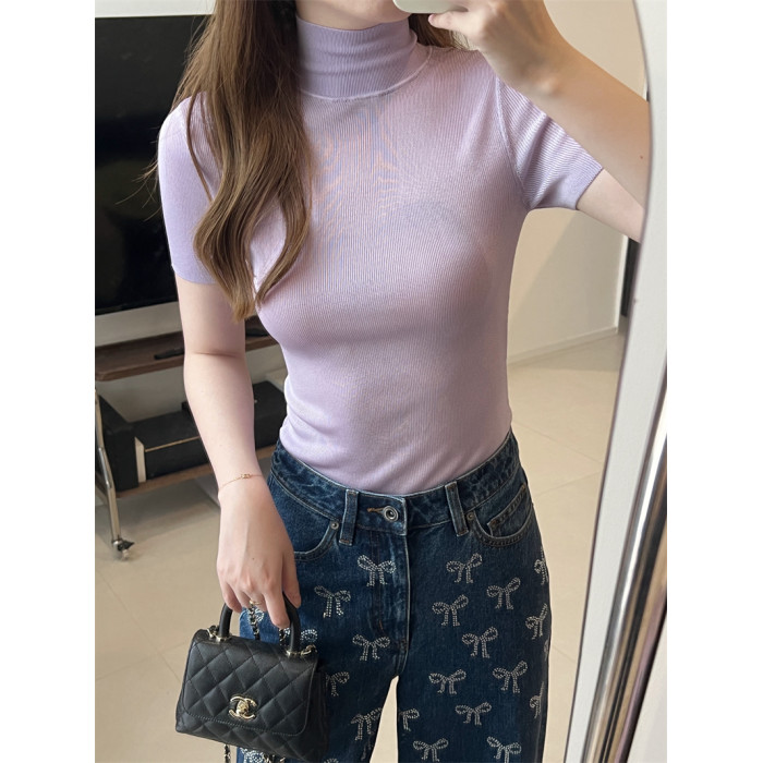 縱享絲滑 四季款ji致膚感紫色立領彈力針織打底衫
