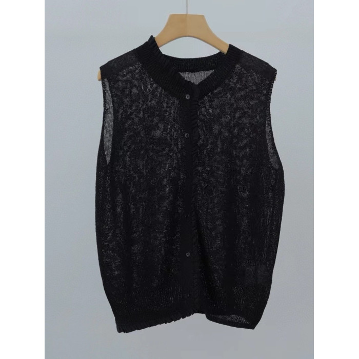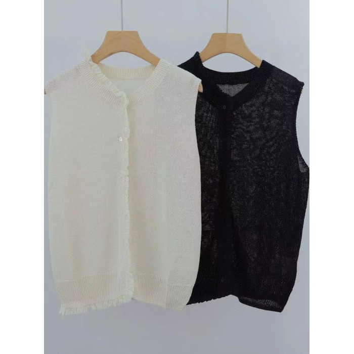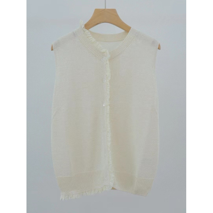 2025夏季新款女裝白色無袖毛針織衫女寬松圓領套頭打底衫