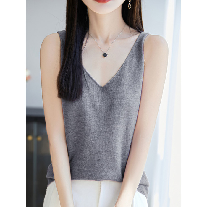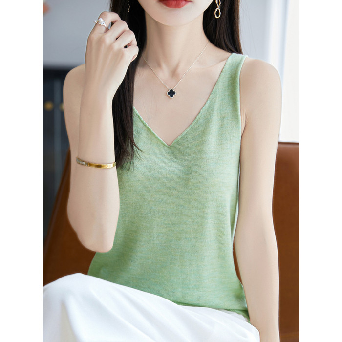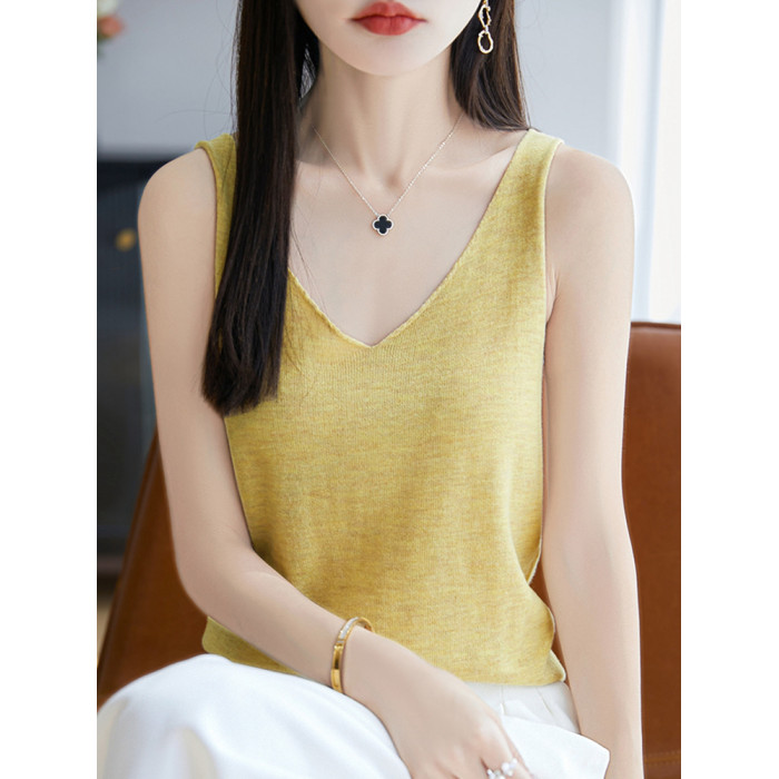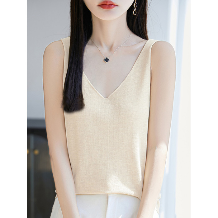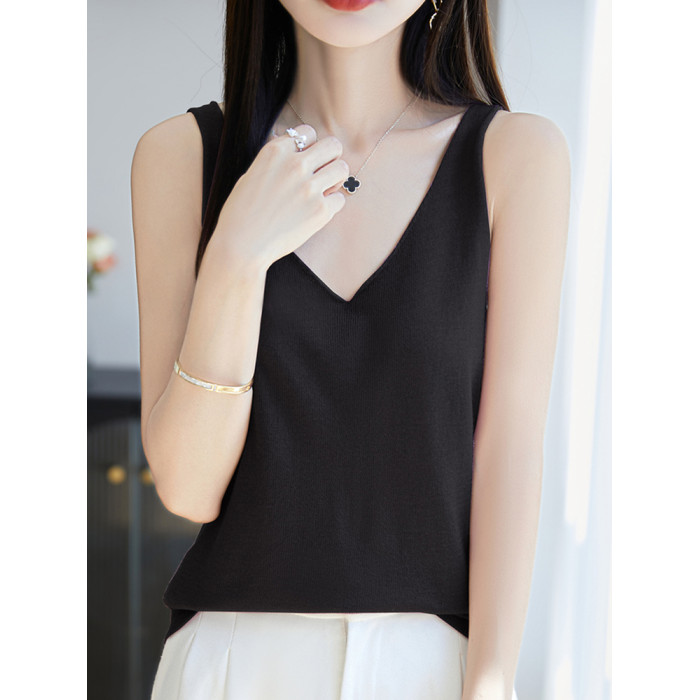 純色V領吊帶背心女夏季2025新款打底衫洋氣大碼女裝冰絲針織上衣