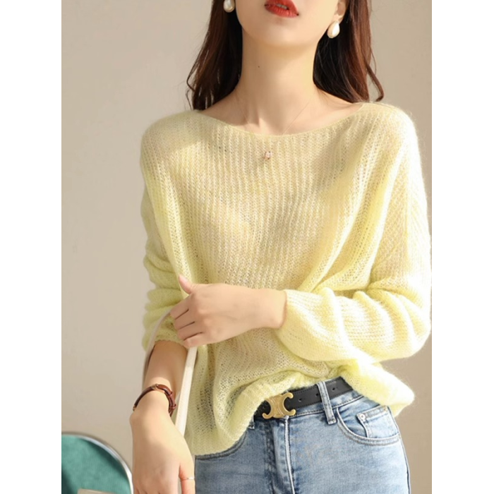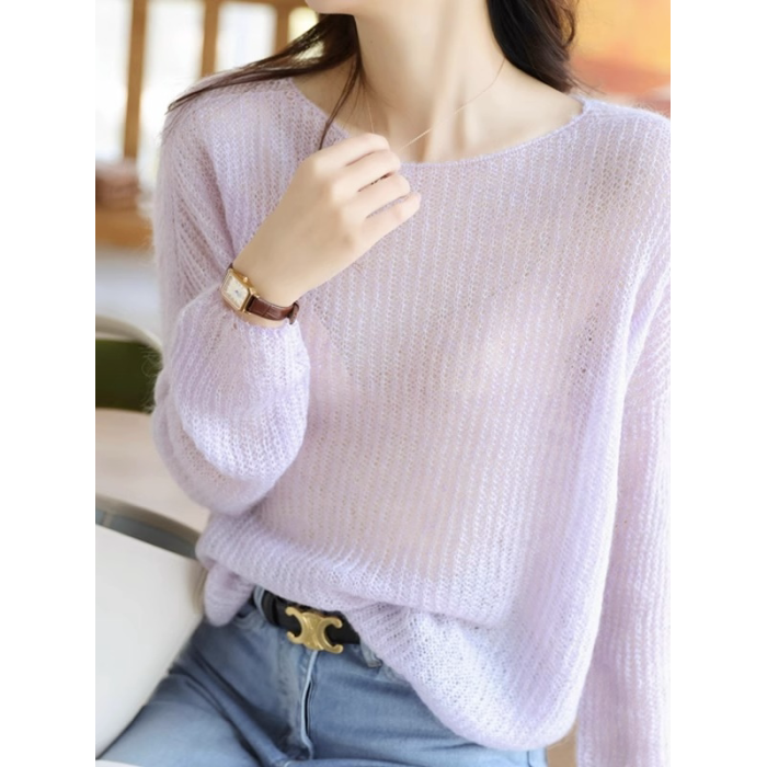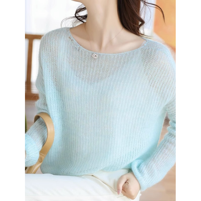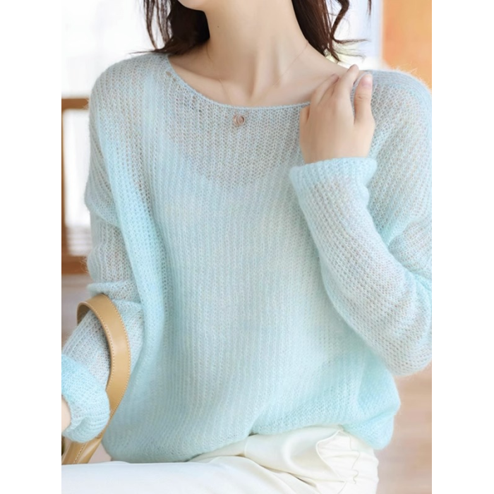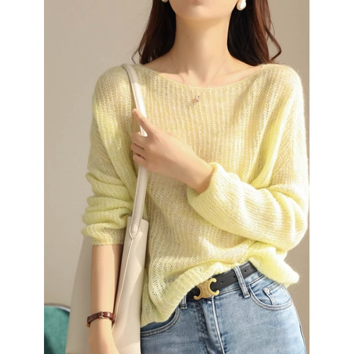 慵懶風鏤空圓領套頭內搭打底衫遮肉顯瘦氣質純色針織衫百搭上衣女
