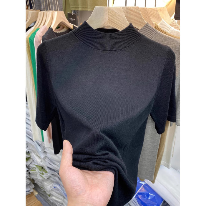 大碼春秋寬松半高領針織打底衫女胖mm五分袖氣質洋氣中袖內搭上衣