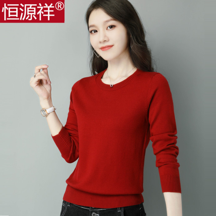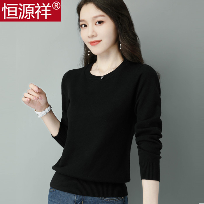 恒源祥羊毛衫女爆款毛衣套頭短款寬松秋冬薄款內搭低領針織打底衫