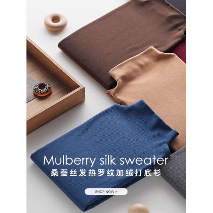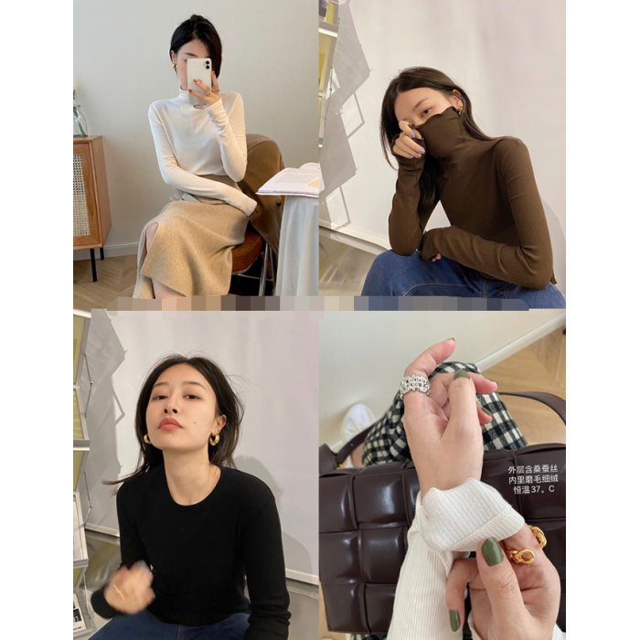 bi入打底~桑蠶絲保暖髮熱加絨內搭打底衫女秋冬半高領針織衫