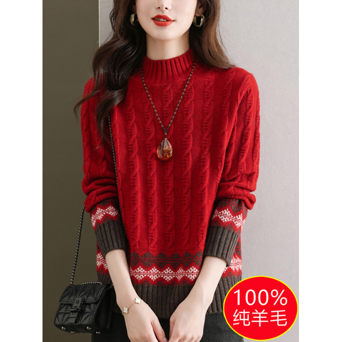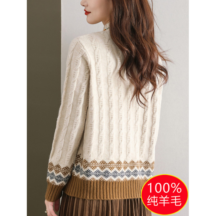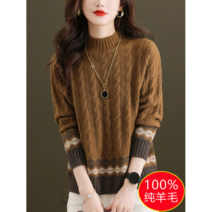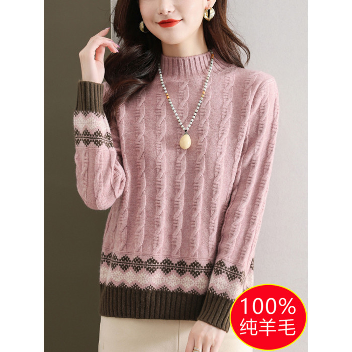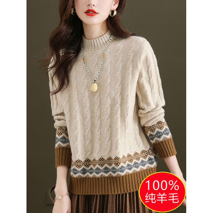 100純羊毛打底衫2024新款女秋冬時尚洋氣時髦毛衣半高領羊絨上衣