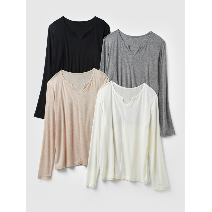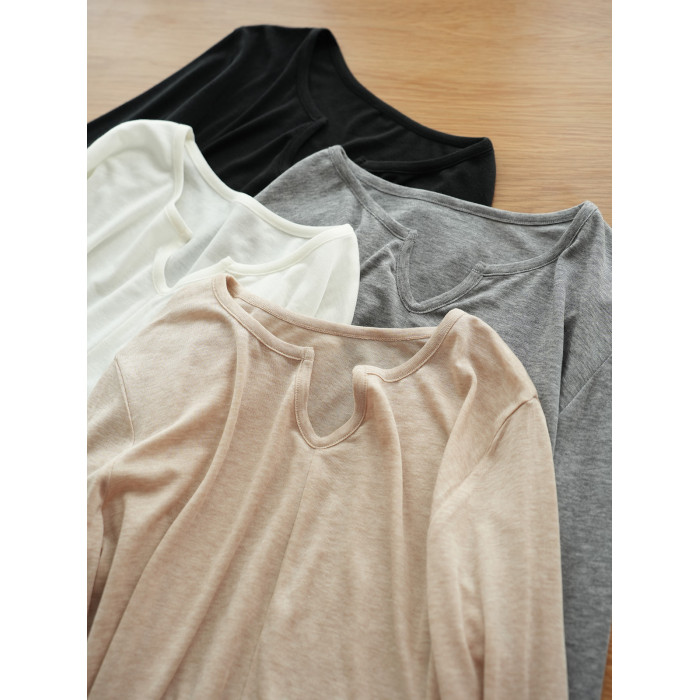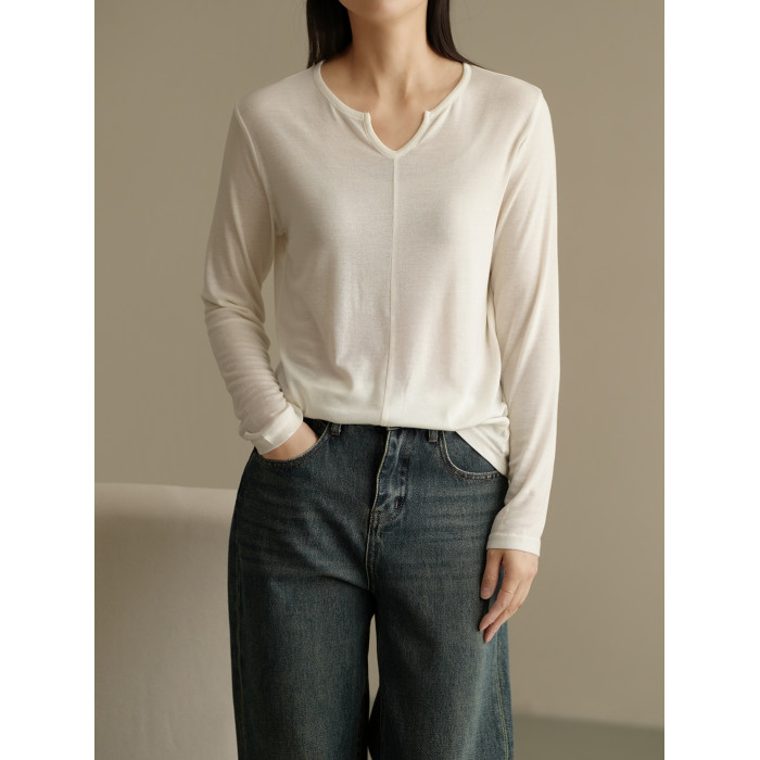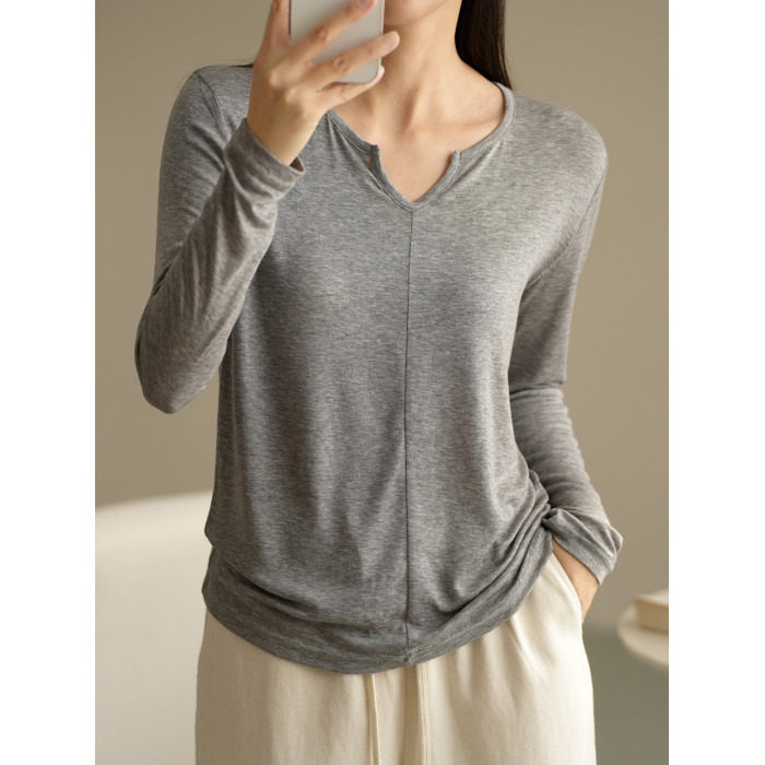 萊賽爾+羊毛 女士亨利領針織衫 柔軟垂感罩衫 打底衫 春秋款女裝