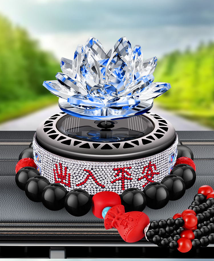 太陽能鑲鑽【出入平安】藍色蓮花+香水+轉運珠