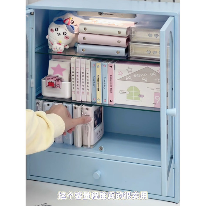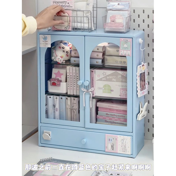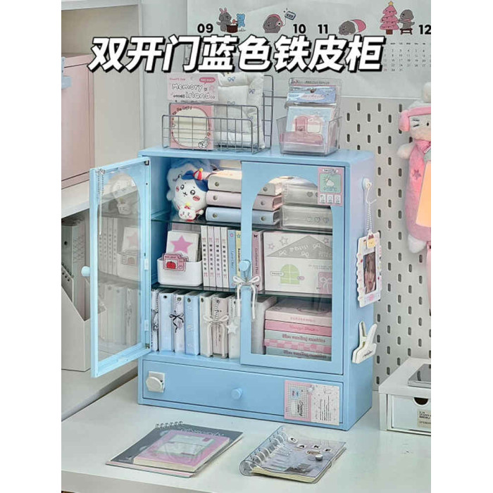 桌面鐵皮小收納櫃帶門文具化妝品手賬宿舍書桌學生置物架收納盒子