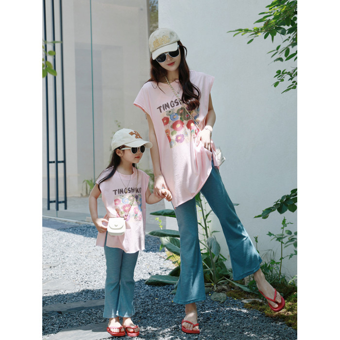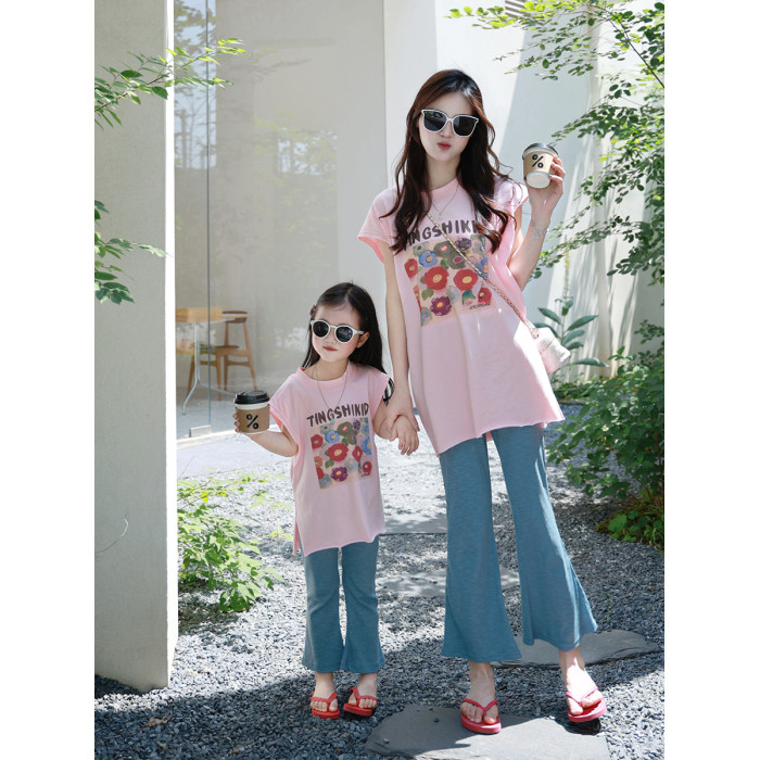 時尚休閒親子裝2025新款夏季母女裝女童洋氣炸街網紅套裝短袖T恤