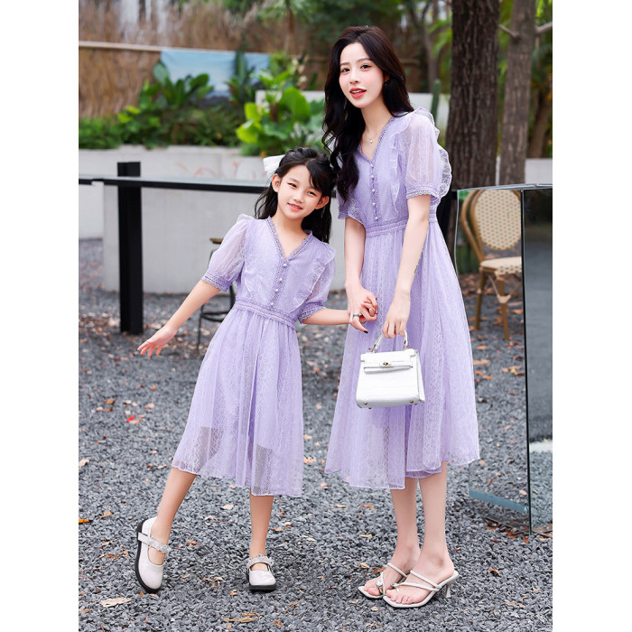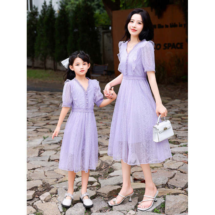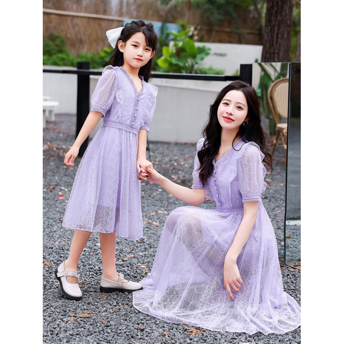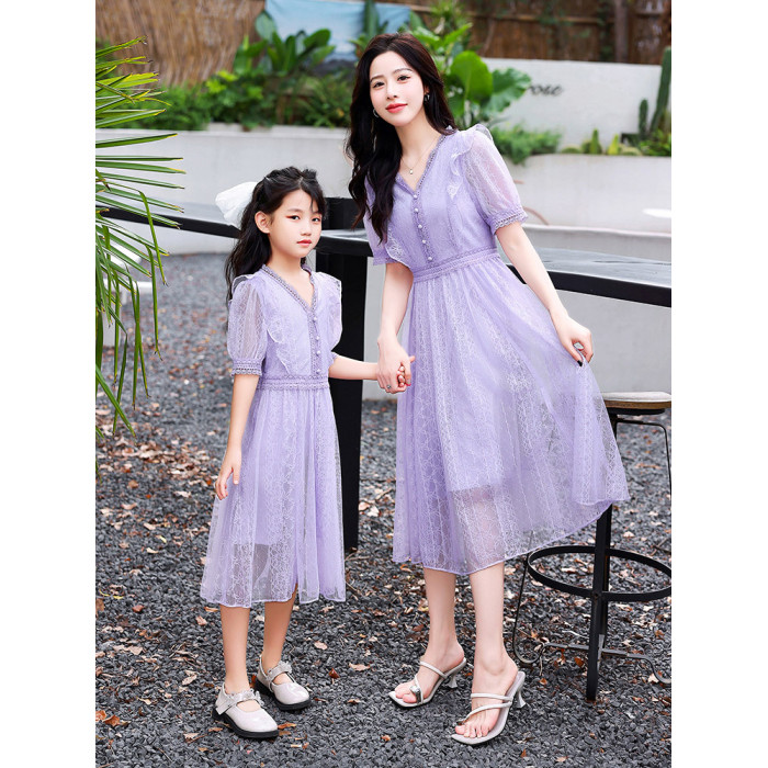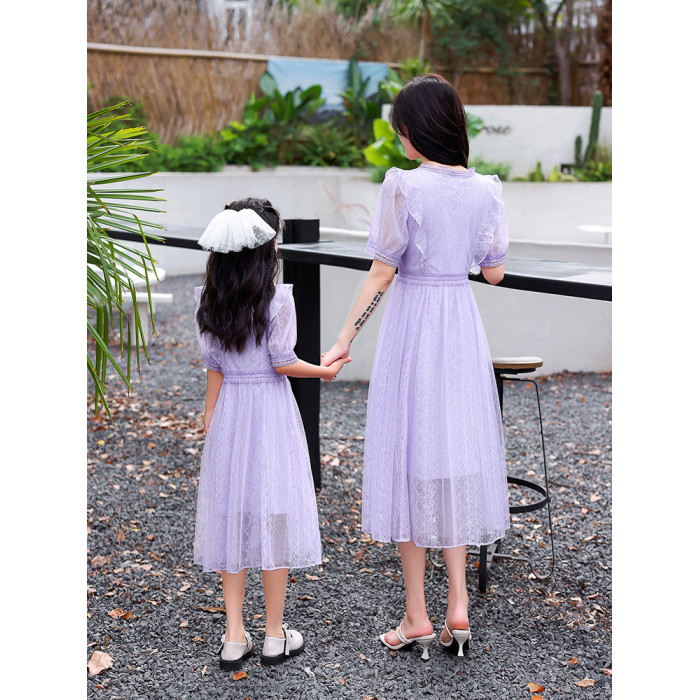 不一樣的高級親子裝連衣裙洋氣2025夏裝女童母女裝蕾絲小香風裙子