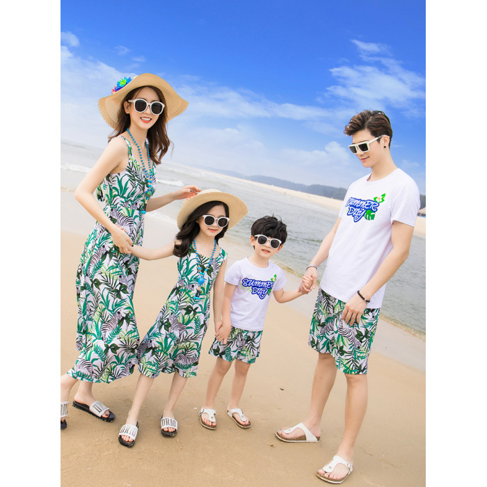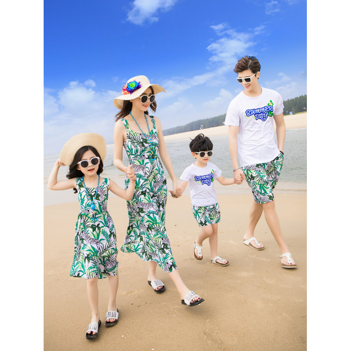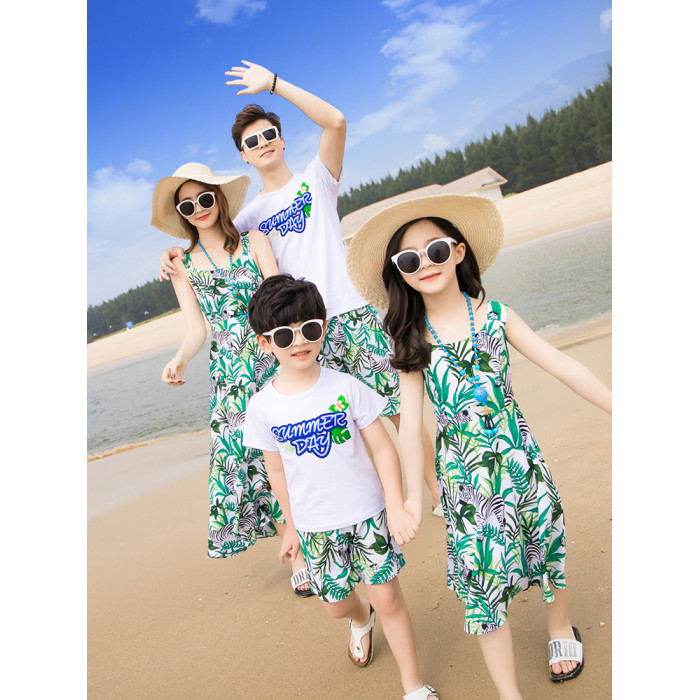三亞海邊沙灘親子裝夏裝2025新款潮一家三口四口套裝母女連衣長裙