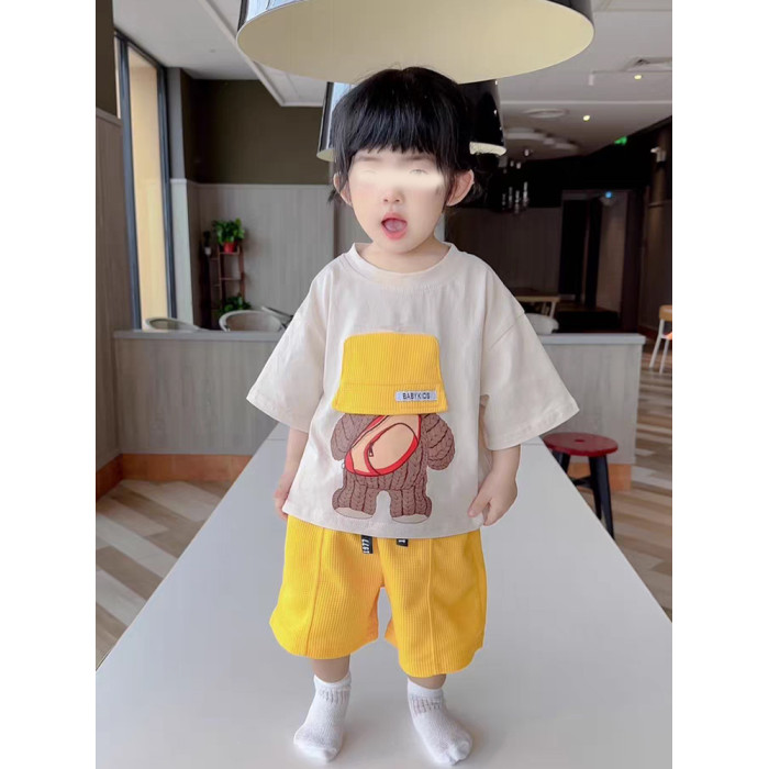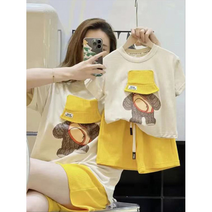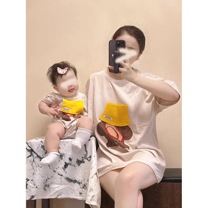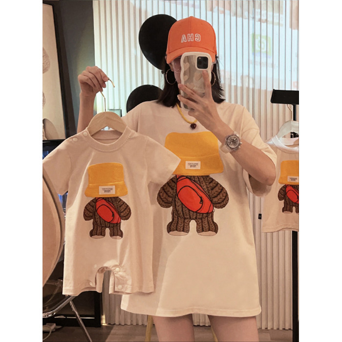 小月齡小熊親子裝夏高級卡通一家三口四口嬰兒母子母女裝短袖t恤