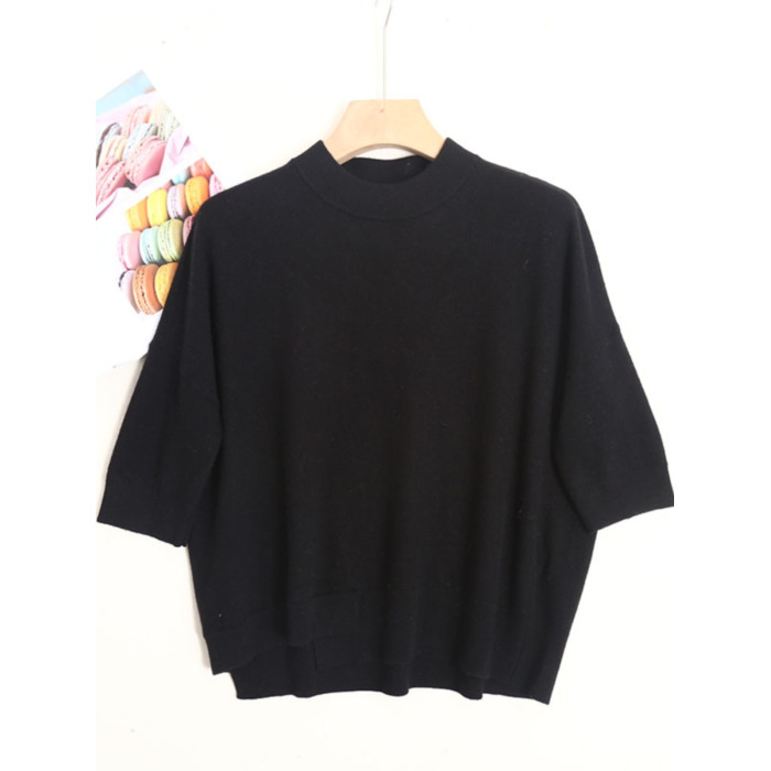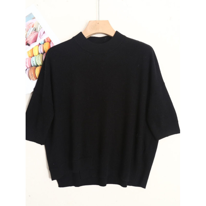 100%純羊絨剪標秋冬款打底衫內搭毛衣女士寬松短袖半高領上衣