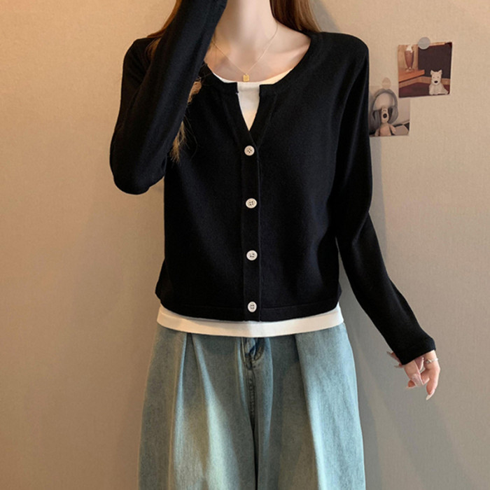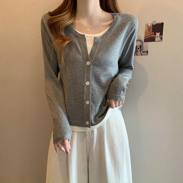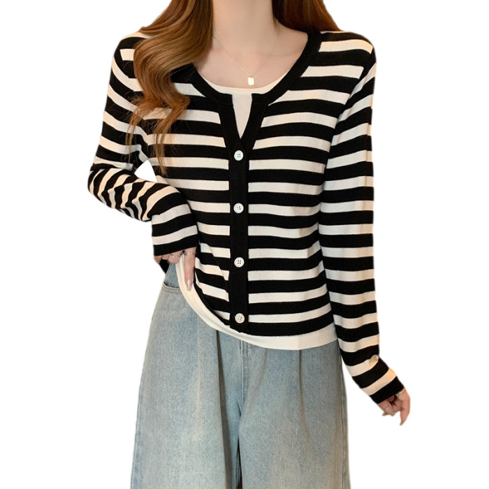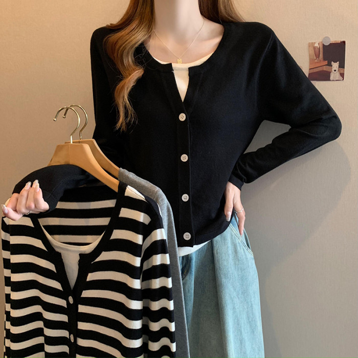 胖mm設計感遮肚顯瘦假兩件針織打底衫女大碼秋冬內搭長袖女士毛衣
