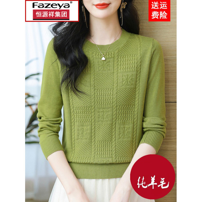 恒源祥彩羊羊毛衫女薄款春秋上衣長袖針織衫女2024新款圓領打底衫
