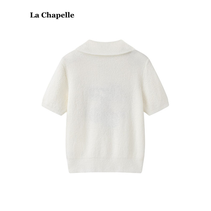 拉夏貝爾/La Chapelle慵懶寬松刺綉針織衫女春夏款短袖打底衫上衣