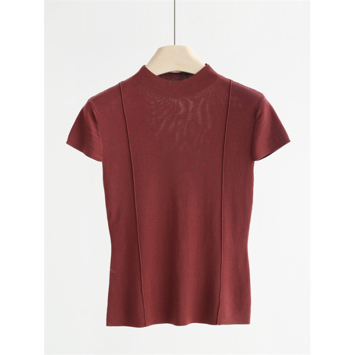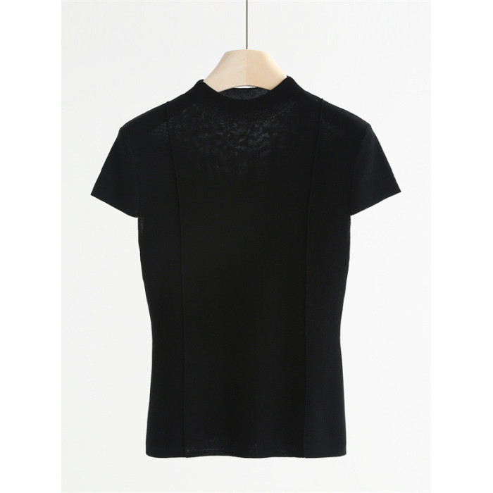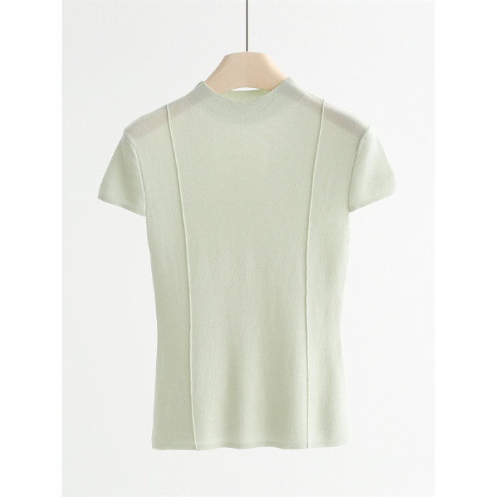 天絲+桑蠶絲半高領針織衫女夏季新款無袖修身顯瘦打底衫內搭上衣